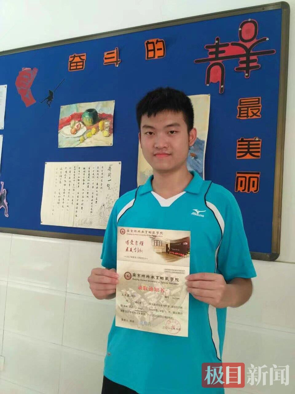 王乐晨收到南京特殊教育师范学院录取通知书
