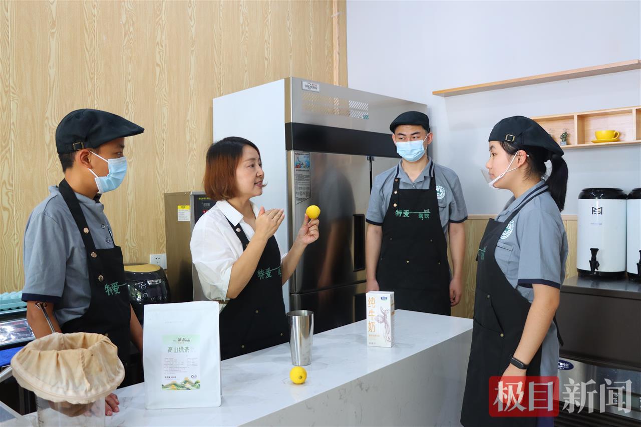 为此,学校打造了职业教育的融工坊,构建融合教育文化,开设茶艺、烘焙、按摩等课程,为学生架起通往社会的桥梁。魏艳丽自拍自编的“特爱茶饮”校本课程,成了茶饮方向学生的上岗秘籍。