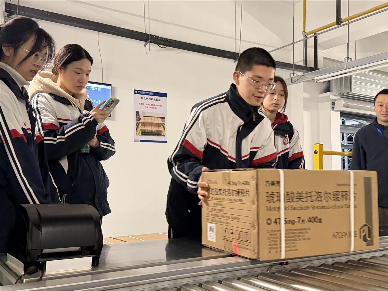 活动伊始,物流中心相关负责人带领学子们系统介绍了企业发展历程、行业地位、医药物流行业规范,以及药品从入库、存储、分拣到配送的全流程管理体系。