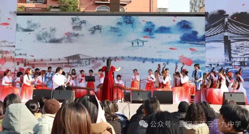 丝竹管弦奏响山河壮阔,青春舞姿跃动时代风采。12月26日,武汉市第三十九中学“百廿弦歌不辍,艺韵薪火相传”艺术月文艺汇演在新启用的户外操场震撼上演。13个由学生自编自演的精彩节目轮番登场,不仅呈现了一场高水平的视听盛宴,更展现了这所百廿老校深厚的艺术教育底蕴与“五育并举”的丰硕成果。