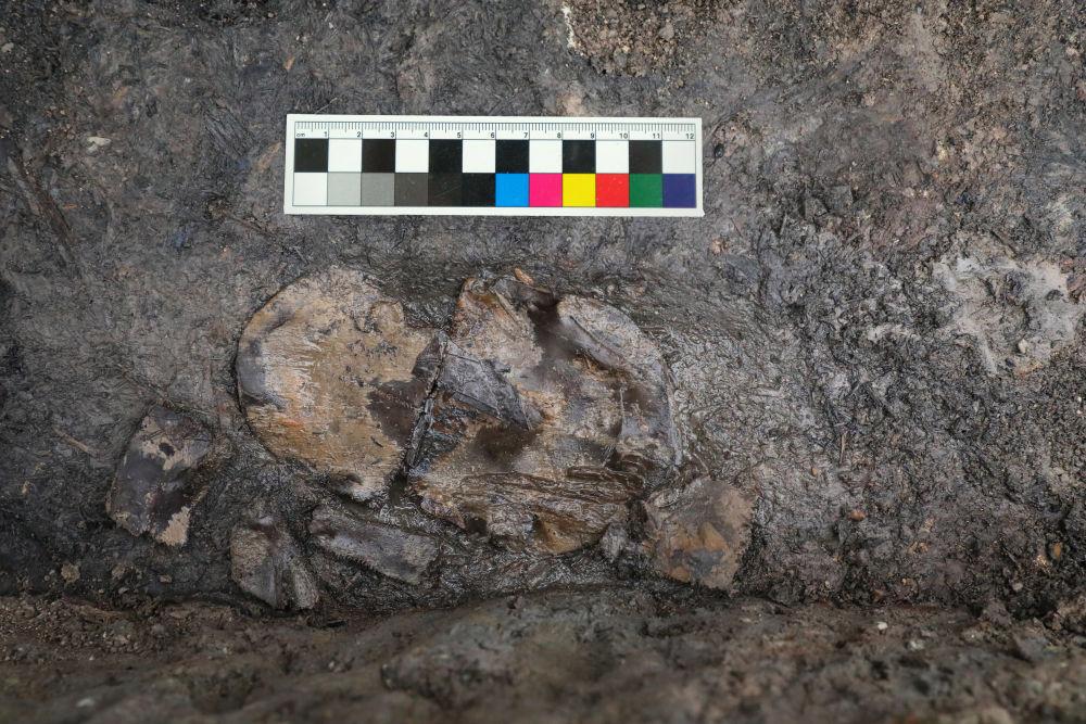 这是2025年拍摄的绍兴塔山和畅坊越国高等级祭祀遗址出土的龟甲(东周时期)。新华社发