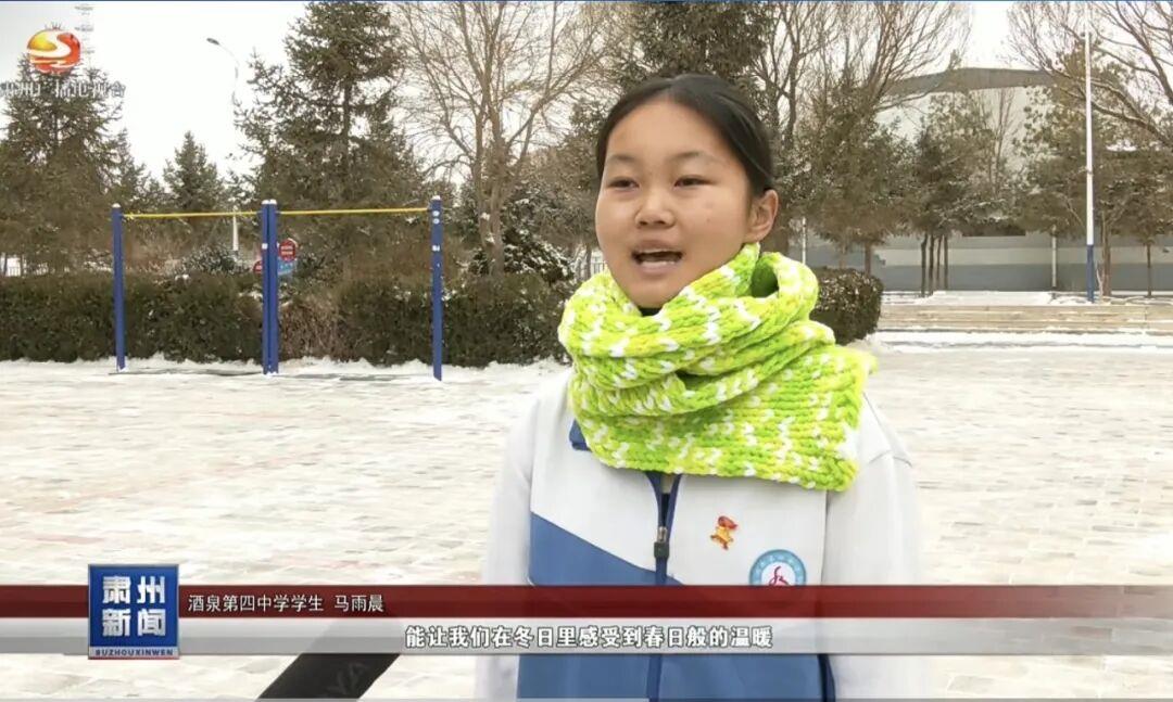 12月22日,捐赠仪式在甘肃省酒泉第四中学隆重举行。团区委、酒泉四中校领导与支教教师共同为学生系上围巾,送上寄语。酒泉四中校长深情表示,这份来自远方的礼物,“不仅温暖了孩子们的身体,更照亮了他们前行的道路”。活动获团酒泉市委、团肃州区委等多家主流媒体报道,让“小围巾”传递的“大温暖”感动更多人。