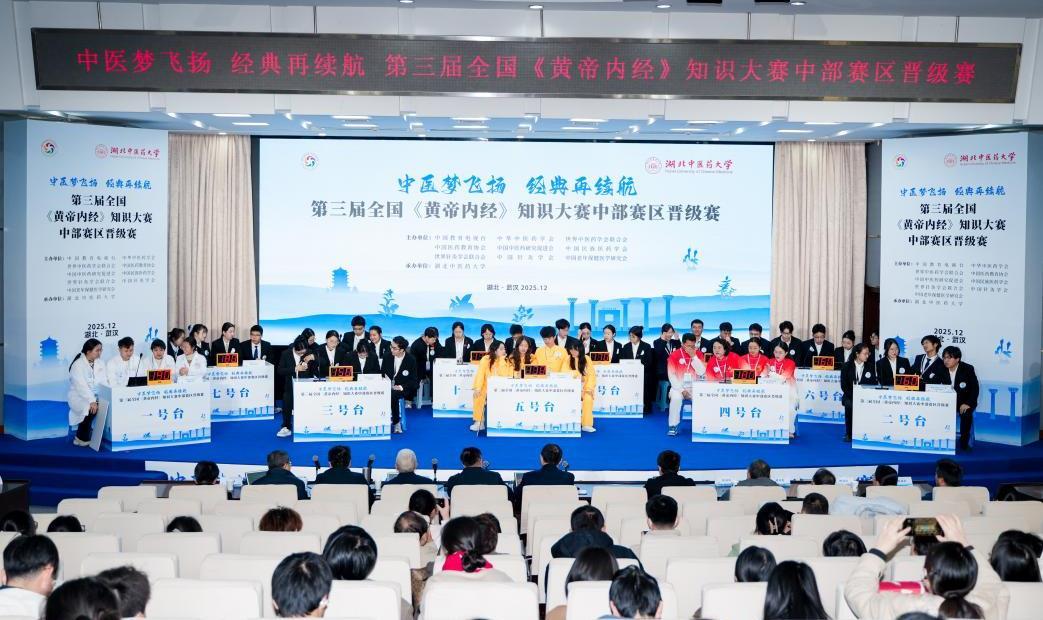 12月26日,由全国《黄帝内经》知识大赛组委会主办、湖北中医药大学承办的第三届全国《黄帝内经》知识大赛中部赛区晋级赛在黄家湖校区举行。经过激烈的角逐,湖北中医药大学附属医院湖北省中医院队(府精神明队)获得了特等奖,而河北中医药大学(冀望微旨队)、河北中医药大学(灵素四象队)、荆州市中医医院(荆楚凤鸣队)获得了一等奖。