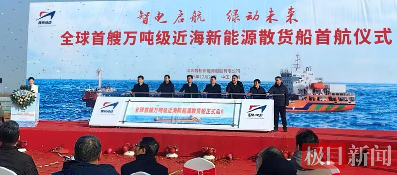 12月29日,全球首艘万吨级近海新能源散货船“魏桥绿动1”轮在山东滨州无棣创业码头正式启航。该船由武汉理工大学绿色智能江海直达船舶与邮轮游艇研究中心研发设计,深圳魏桥新能源船舶有限公司持有。此次首航,标志着我国在近海新能源船舶研发与应用领域取得里程碑式突破。