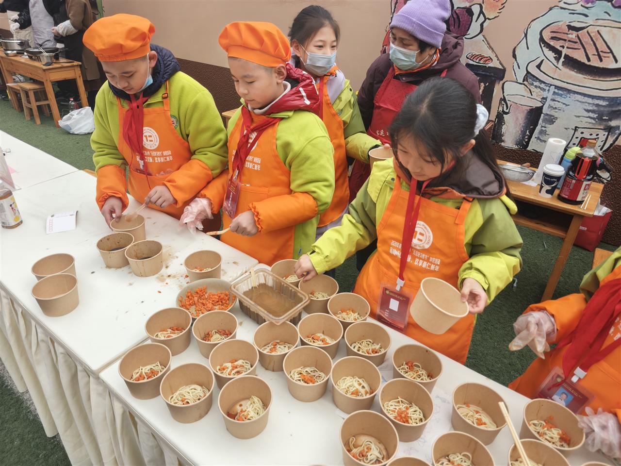 长堤街的米酒小汤圆摊位前,五年级(7)班的刘千钰同学耐心化解领取秩序难题,还主动当起“环保宣传员”,提醒同学们分类投放餐具:“校园干净需要大家守护,垃圾分类也是养成好习惯的重要一课。”蔡林记热干面摊位前,五年级(2)班的张禾洋在服务低年级同学时磨炼出十足耐心:“小朋友们记不住领餐规则,我们反复讲解,慢慢就学会了换位思考。”