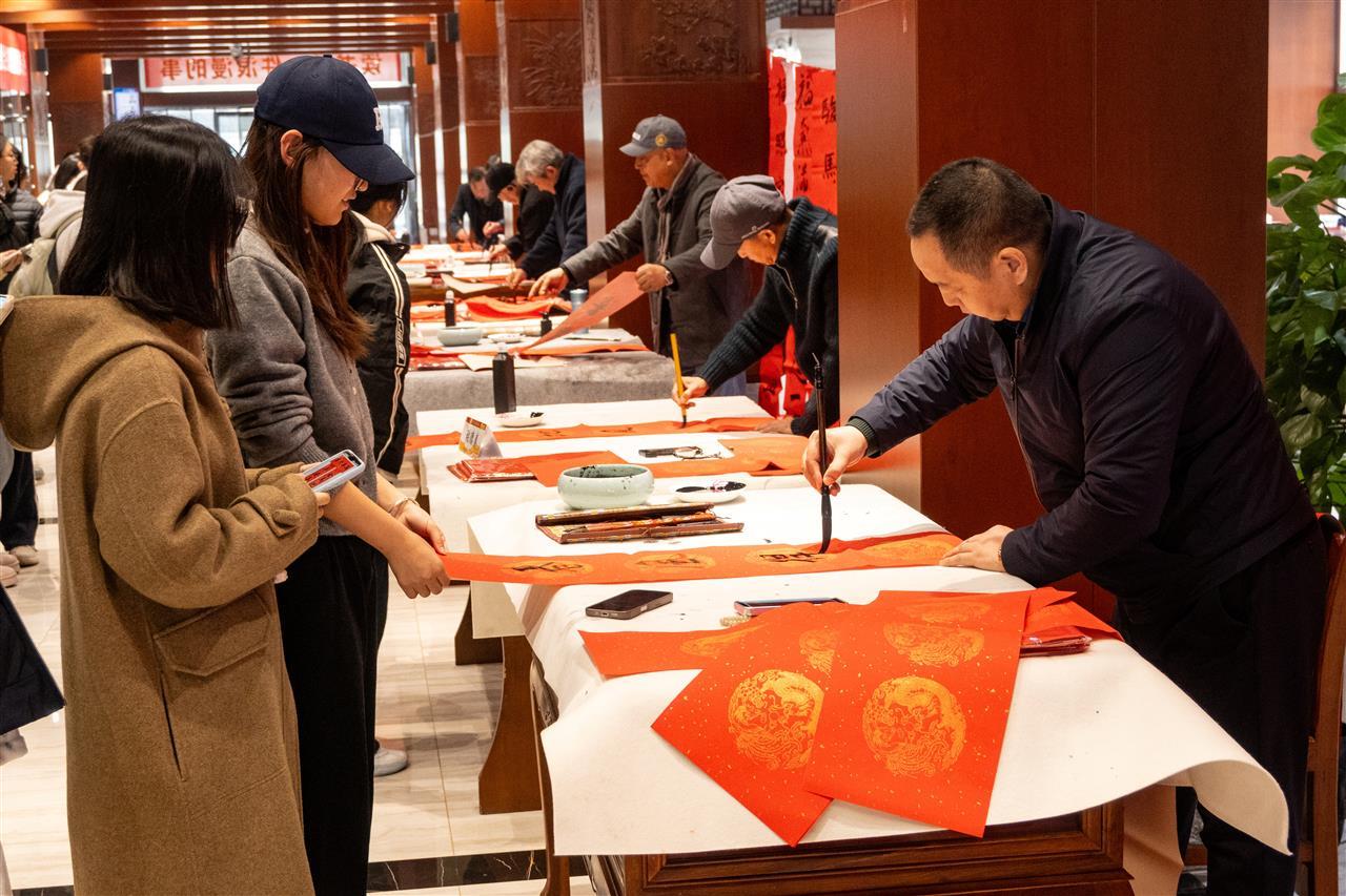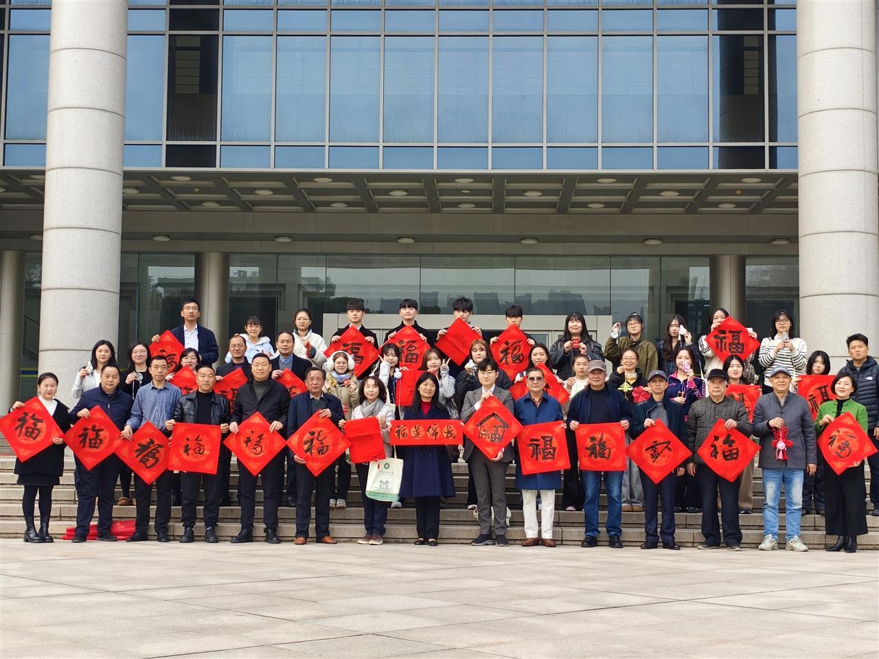 活动现场,师生们挥毫泼墨,红彤彤的春联挂满了走廊,为即将到来的新年增添了喜庆气氛。