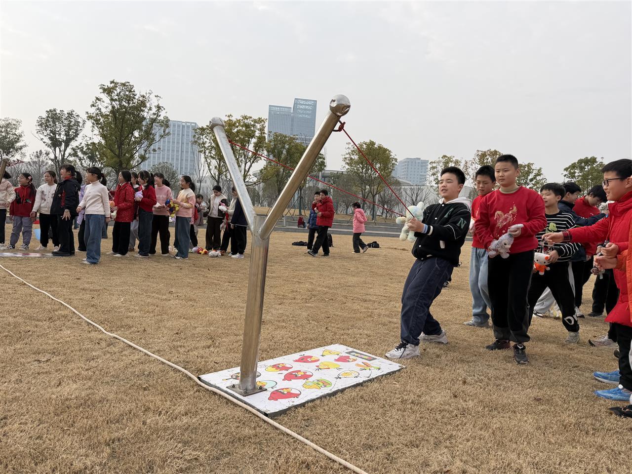 除了历史学习,活动还设置了“抢种抢收”“丰收连连看”等团队游戏。在模拟投掷“手榴弹”的体验区,孩子们排起长队。四年级(9)班的向瑞琳说:“我体验了扔手榴弹的乐趣,也体会到战士们的辛苦。”