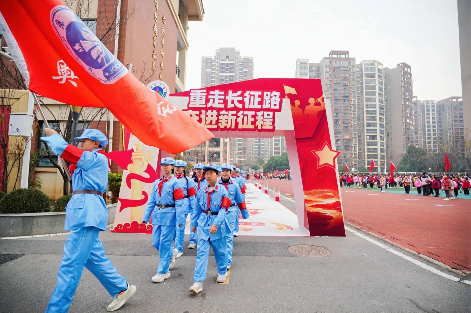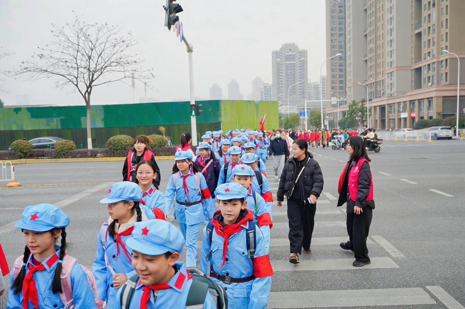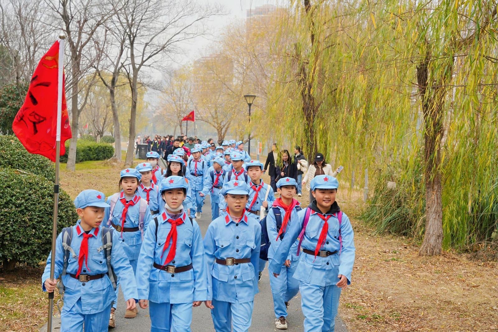 新闻记者在现场看到,作为首发方阵的六年级(6)班在徒步前带领全校同学朗诵《七律·长征》。学生张欣瑞说,通过这次活动,他立志“长大后要把知识奉献给祖国”。该班晏静老师表示:“同学们斗志昂扬,这堂生动鲜活的校外红色思政课让他们受益匪浅。”