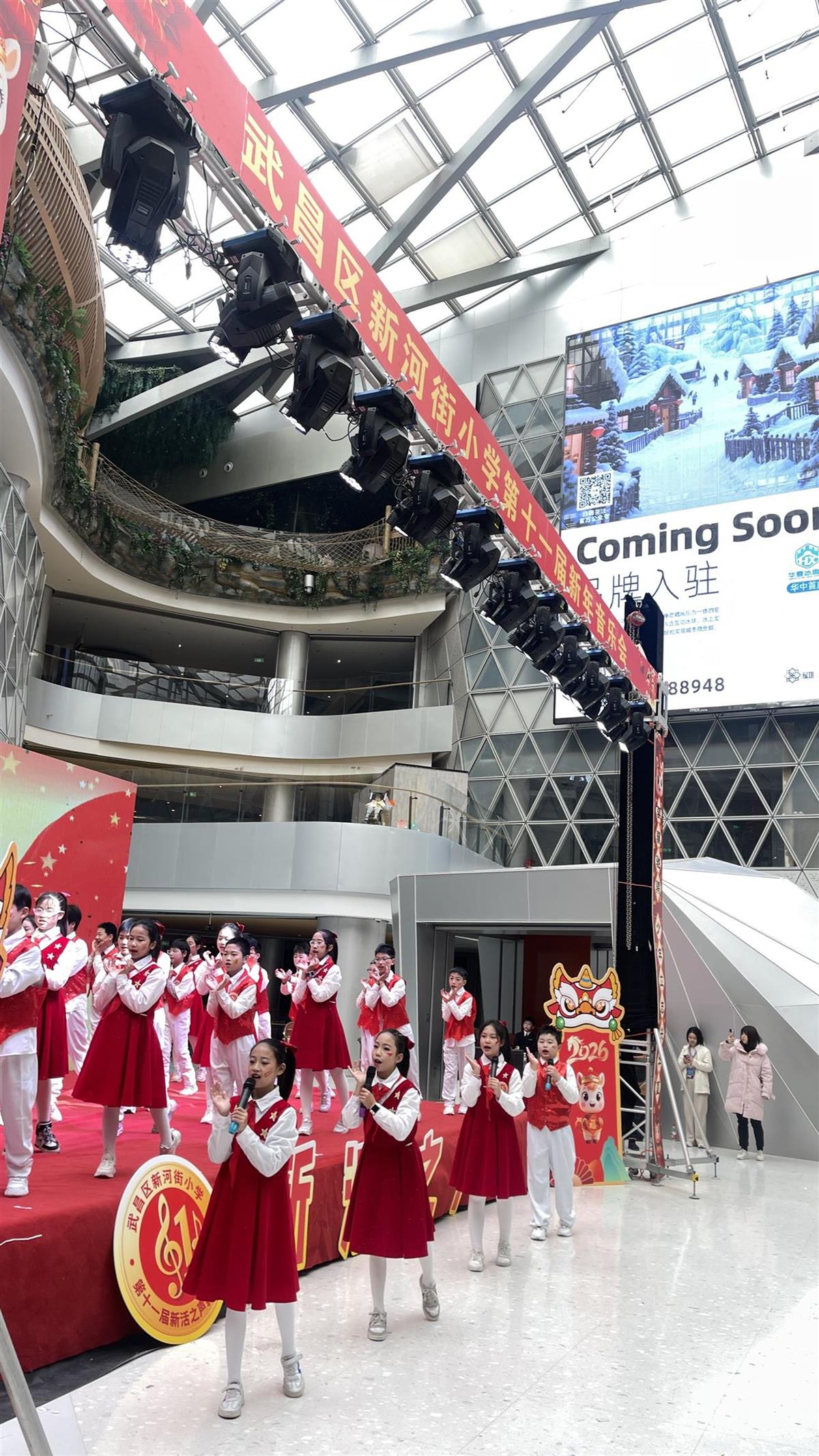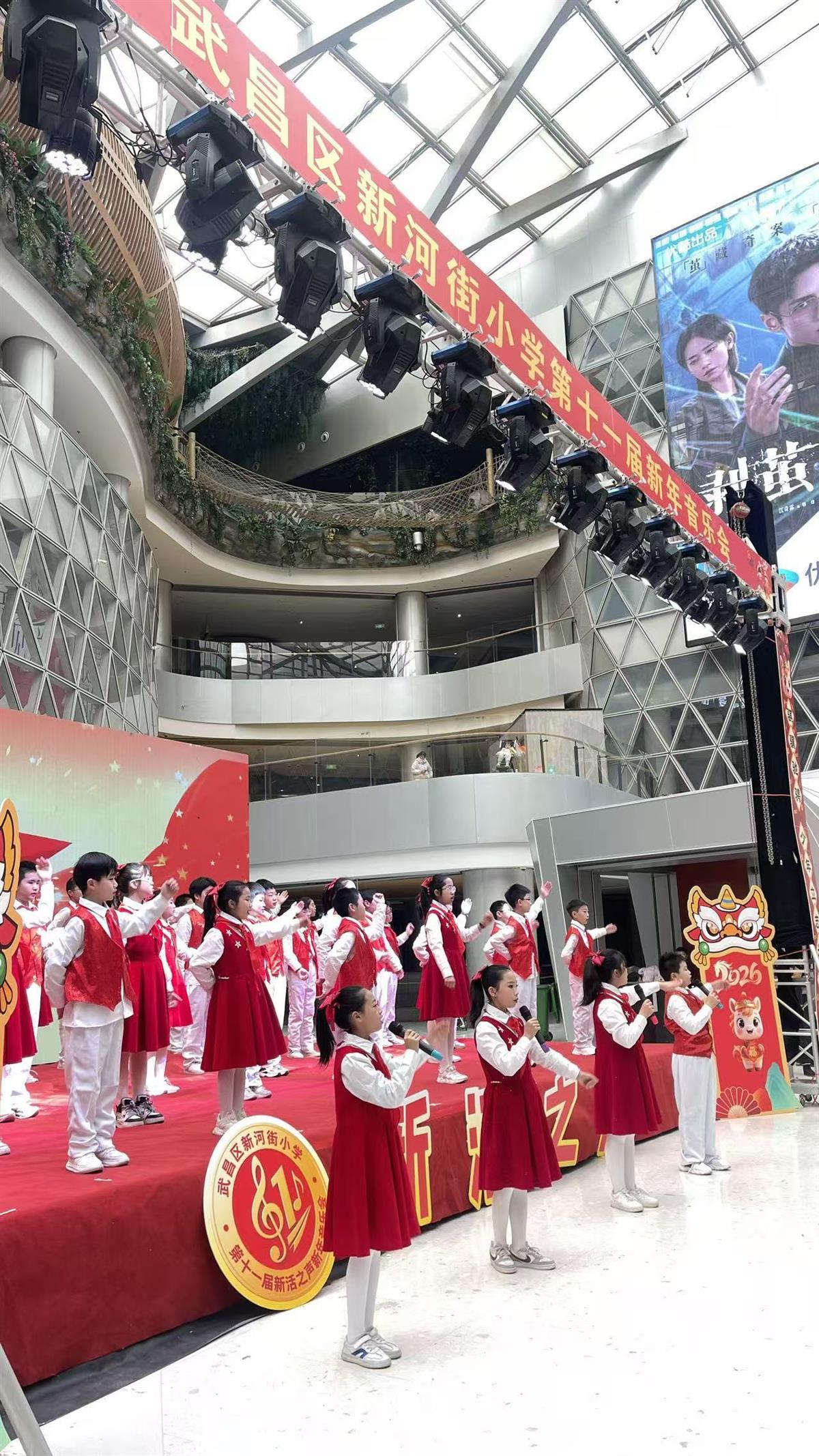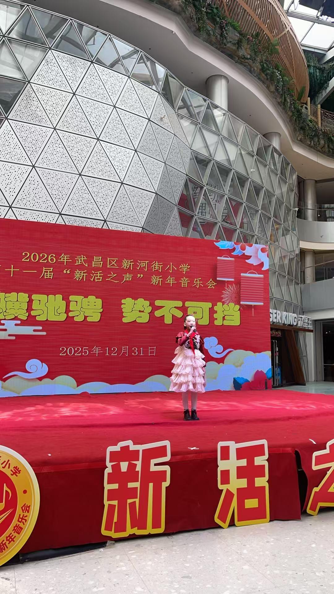 一元复始,华章日新。12月31日上午,武汉市武昌区新河街小学第十一届“新活之声”新年音乐会在绿地·新田360欢乐启幕。全校师生和家长齐聚一堂,在歌声、乐声与掌声中,告别2025年,迎接充满希望的2026年。