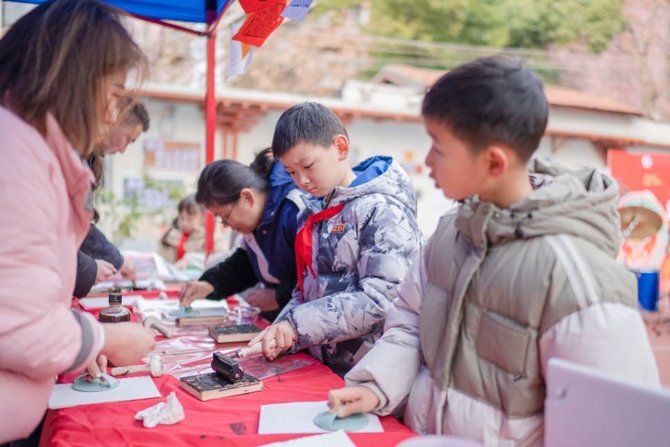 除了跳蚤市场,传统文化体验区也吸引了不少学生和家长。拓印、投壶、汤圆品尝等摊位前围满了人。孩子们亲手尝试古老技艺,品尝传统美食,在互动中感受到浓浓的年味。更让人眼前一亮的是,活动还引入了科技体验环节,传统民俗与现代科技交织,为孩子们打开了一扇了解过去与未来的窗口。