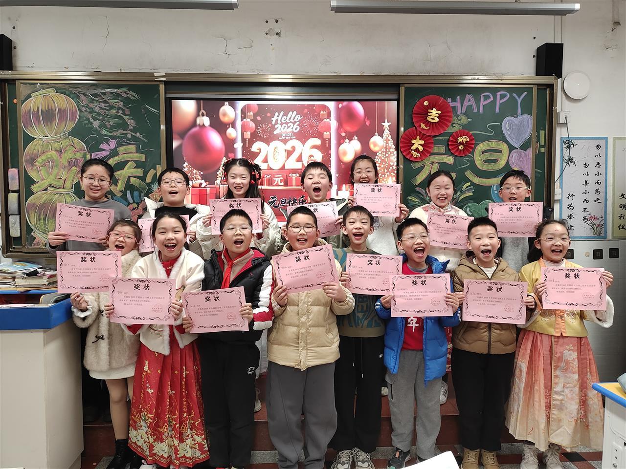 12月31日下午,各班级开展温馨的班聚活动。班级表彰设置“进步之星”“劳动小能手”“合作标兵”等奖项,用朴素的认可鼓励每一位学生。美食品鉴会上,师生与家长志愿者共同准备饺子、汤圆、年糕等传统美食,孩子们在品尝中分享劳动心得。
