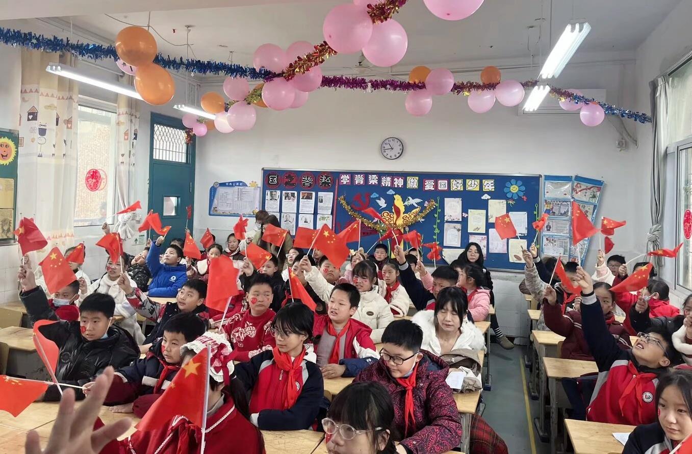 活动在庄严的升旗仪式中拉开序幕。全体师生齐唱校歌《向往》,清澈的童声回荡校园,传递着对未来的美好憧憬。随后,“班班有歌声”红歌演唱评比在各教室展开。《红星歌》《少年中国说》《我爱你中国》等经典旋律接连响起,同学们用饱满的热情和富有创意的表演,传承红色精神,抒发爱国之情。