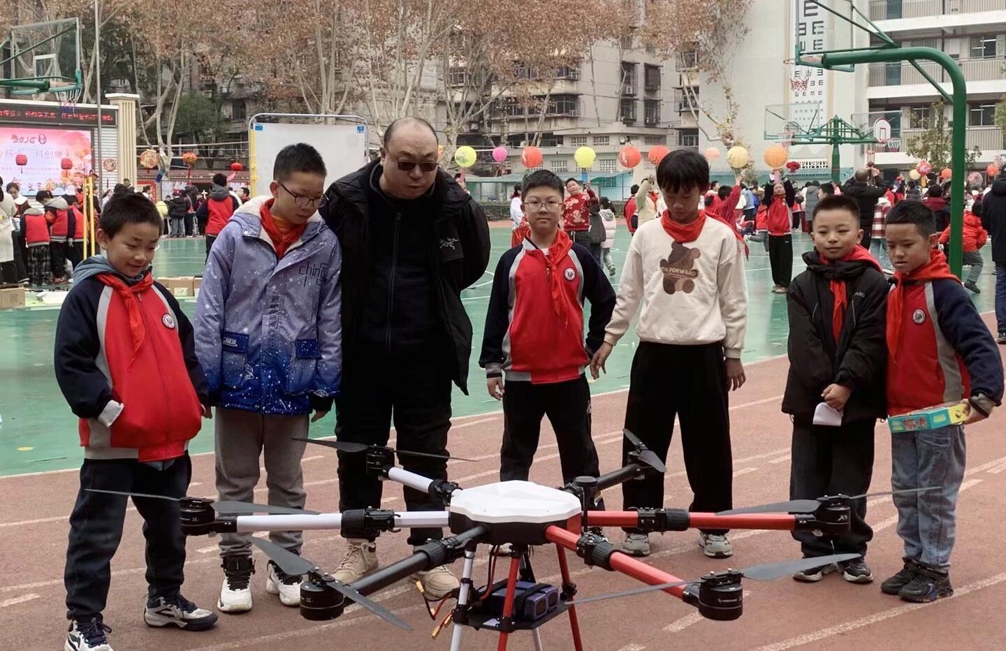 与室内红歌演唱相呼应,操场上举办的“元旦科技游园会”同样热闹非凡。科技体验区内,3D打印、机器狗展示、无人机飞行、悬浮实验等互动项目吸引学生踊跃参与,惊叹声、讨论声不绝于耳。传统游戏区则开展了投壶、射箭、套圈、猜灯谜等活动,让学生们在动手动脑中感受古今智慧。