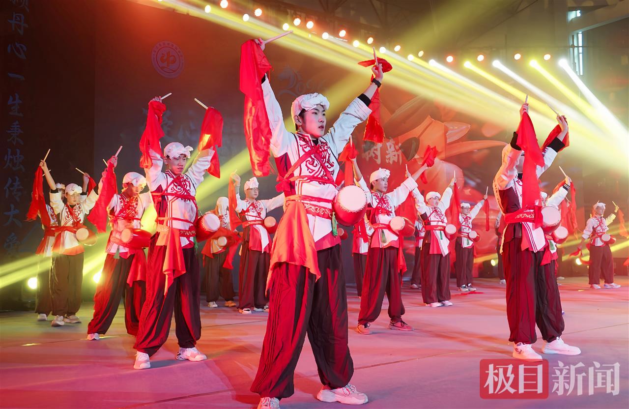 舞台灯光骤亮,鼓点如心跳般撞响,数十名少年腾跃、旋转,绸缎如火焰般翻卷——这不是专业剧场演出,而是武汉市钢城第四中学2025年艺术节艺术展演的现场。12月30日下午,全校师生以一场自编自导自演的精彩演出,共同迎接新年。
