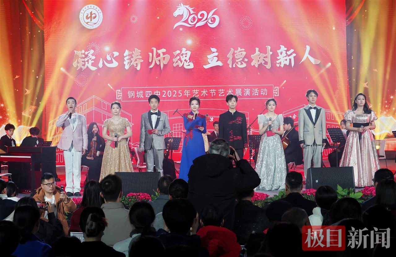 这场以“凝心铸师魂、立德树新人”为主题的艺术节,已成为钢城四中师生共同期盼的年度文化盛事。多年来,从昔日平地上搭建的简易舞台到如今灯光音响完备的演出空间;从最初的才艺展示,到如今融合舞蹈、声乐、器乐、朗诵、情景剧等的综合性艺术呈现,舞台每一次精彩的绽放,都承载着学校为学生搭建成长平台、促进全面发展的育人追求。