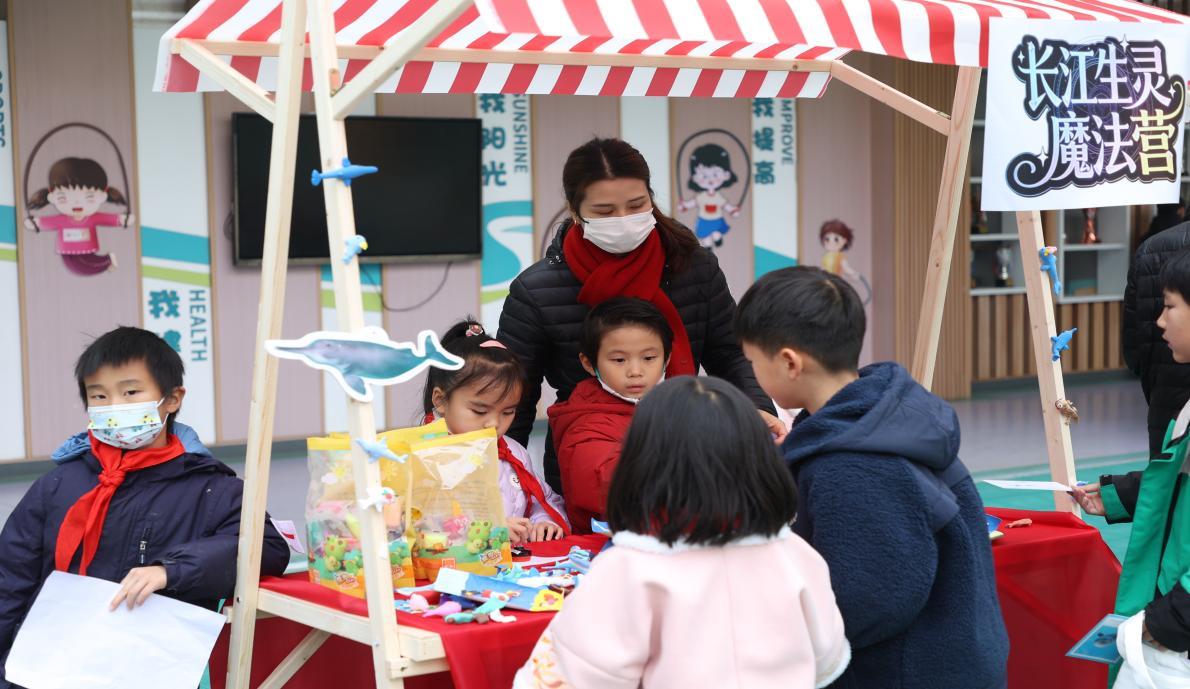 二年级学生组成“长江守护团”,通过科学环保知识学习、认识长江生物和长江保护舞台剧,把生态课“搬”进操场。他们用黏土捏出微笑的江豚,设计“长江跳跳闯”关卡——保护长江不是口号,而是好玩的游戏。