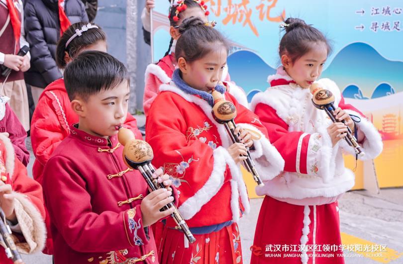 “过早冇?”12月31日,武汉市江汉区红领巾学校阳光校区的孩子们在校园里学起了地道的武汉话。原来,该校第九届校园艺术节以“寻城记”为主题,全校学生通过一系列沉浸式体验,重新认识了家乡武汉。