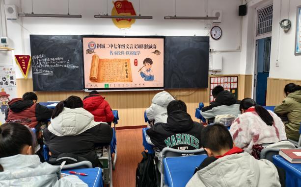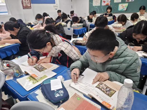 七年级的竞赛活动亮点纷呈、内容丰富,三大核心学科竞赛各有侧重。语文文言文知识大比拼现场,同学们端坐凝神,在文言实词和虚词辨析、课文默写、文意理解等题型中沉着应答。来自707班的刘梓欣同学握着笔快速圈画题干关键词,“平时早读积累的文言字词终于派上用场,像‘孰’‘遂’这些常考虚词,老师反复强调过用法,这次答题特别顺手。”她赛后分享道。作为语文竞赛的命题与阅卷老师,刘洁老师全程参与了活动组织,她欣慰地表示,“文言文是传承传统文化的重要载体,这次竞赛不仅考察了学生的知识掌握度,更让我看到了他们对传统文化的敬畏与热爱。不少同学在文意理解题中展现出独到的思考,答题思路清晰、表达准确,这离不开日常课堂上的积累与沉淀。”