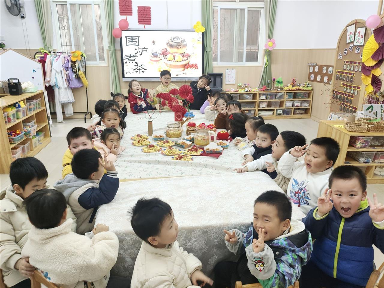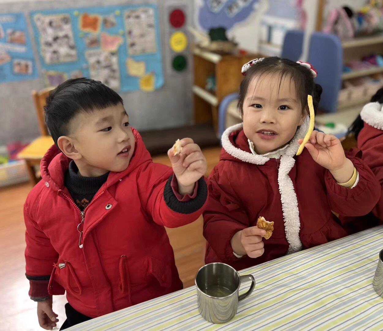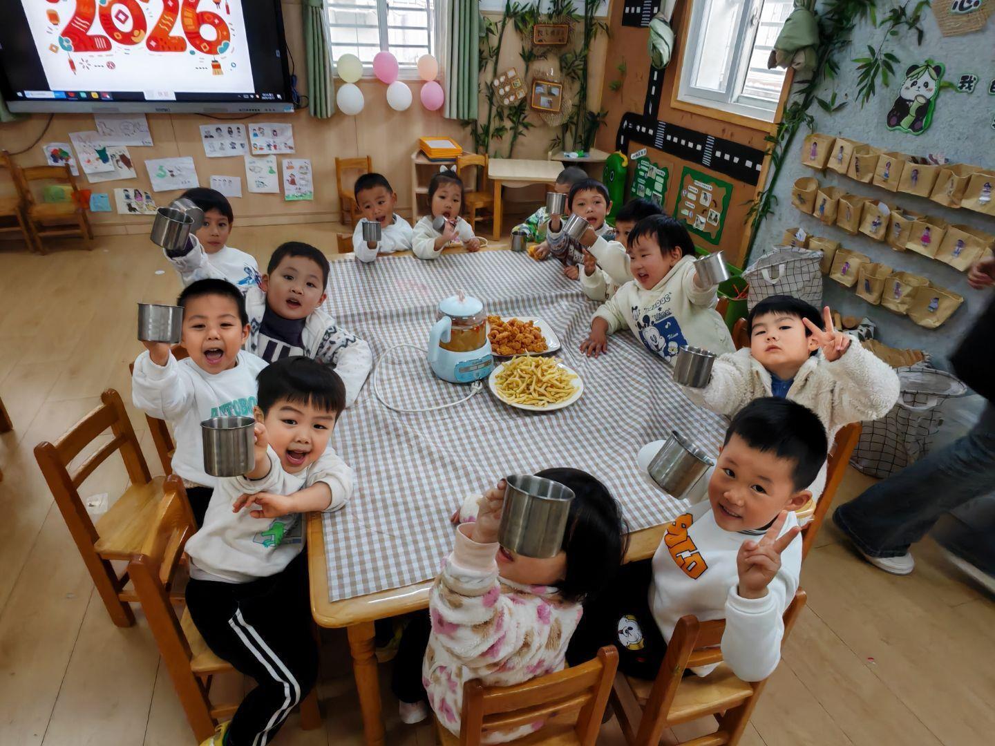 舞蹈环节结束后,各班开展“围炉煮茶”温馨活动。孩子们围坐在一起,品尝茶点,分享新年趣事与愿望,童言稚语中满是对新年的期待。大家还一起唱响新年歌谣,在旋律中传递温暖与祝福。