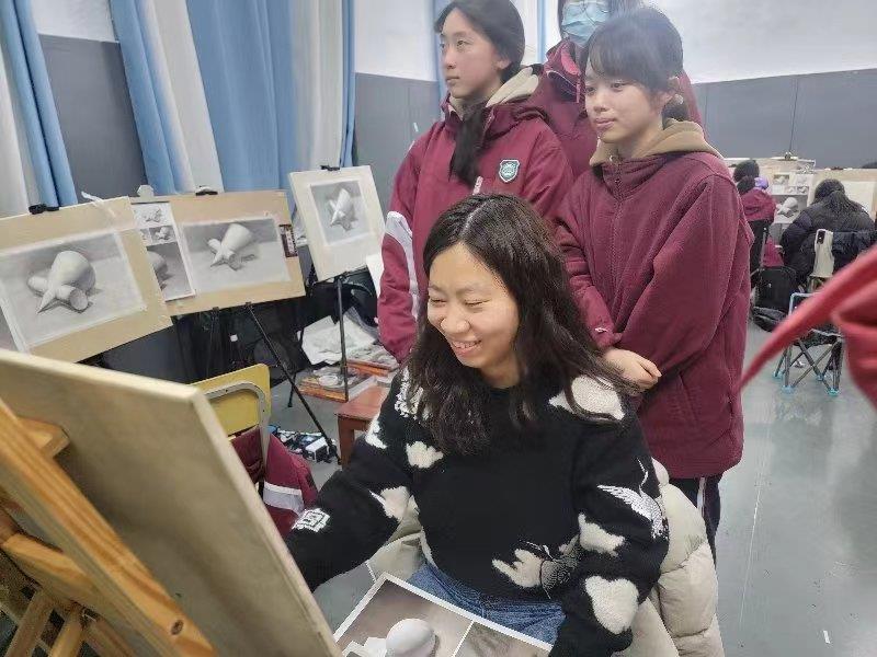“五育并举”的办学理念和“成长合伙人”式的师生关系,为这群零基础学生铺就了上升路径。年级组科学规划训练节奏,老师们耐心地将专业问题拆解成“每日小目标”。那个曾因画不好静物而躲在冬夜画室哭泣的女生,最终也取得了优异成绩。