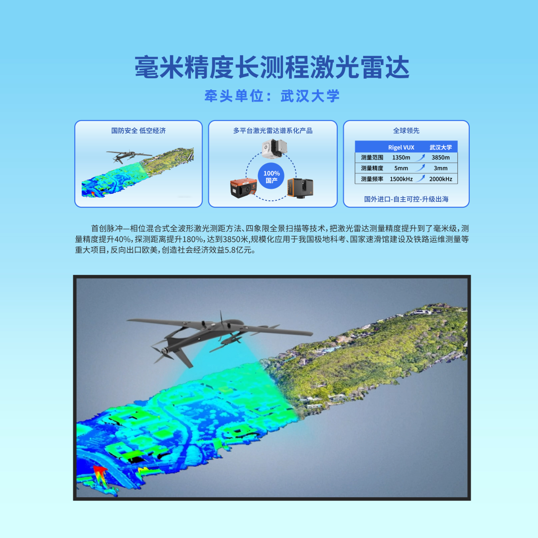9. 毫米精度长测程激光雷达:国产首款毫米级精度长测程激光雷达,打破欧美垄断。