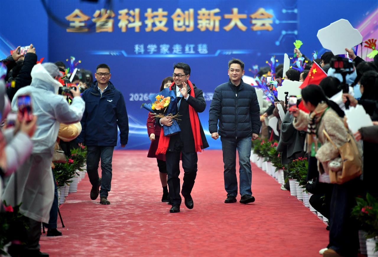 1月4日,武汉洪山礼堂外,百米红毯铺就“星光大道”,鲜花簇拥、掌声雷动。2026年湖北省科技创新大会“科学家走红毯”活动如期举行,这是湖北连续第七年以最高礼遇致敬科技工作者。12位科技工作者款步前行,3位“80 后”青年科学家的鲜活身影格外引人注目,成为荆楚创新梯队蓬勃成长的生动注脚。