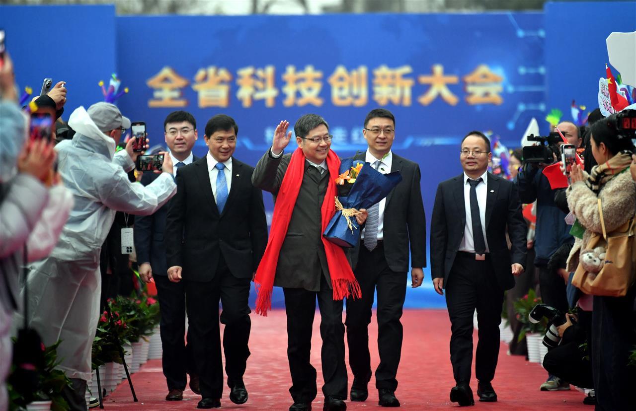 2025年度湖北省科学技术突出贡献奖丁烈云院士(中间抱花)带领团队走红毯