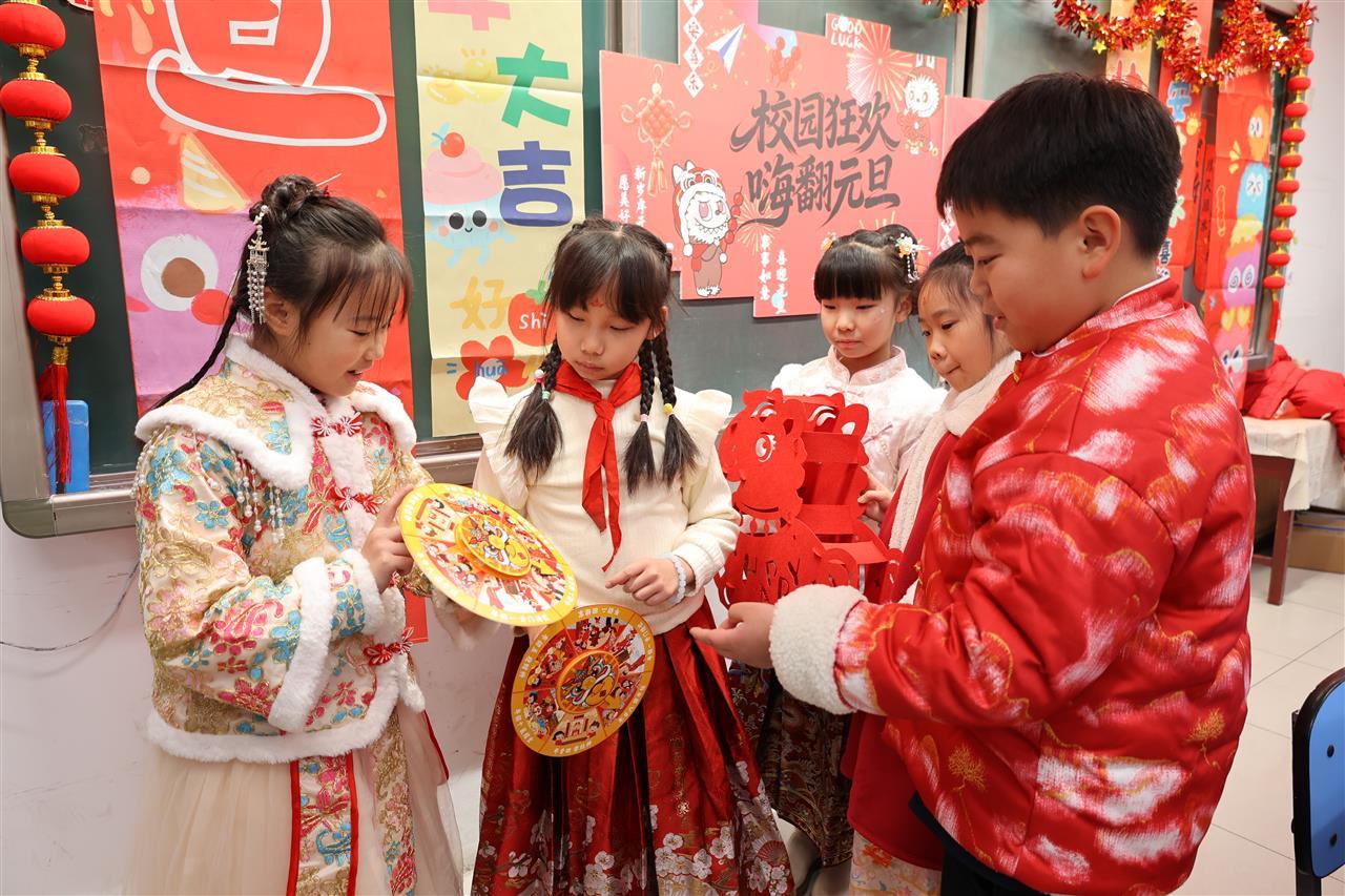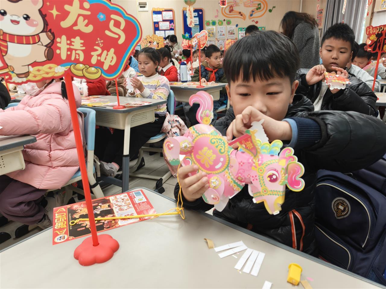 “阳光彩虹小骏马——暖心手作”环节将温情推向高潮。色彩斑斓的马年拼图、趣味十足的跑马灯、造型别致的飞马风车……一件件饱含童真的手工“小骏马”令人目不暇接。学子们将新年期盼、师长敬意与同窗祝福融入作品,亲手赠予身边人,让爱心暖意在校园流转。