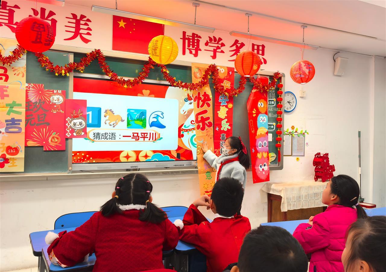 操场上,“元气跑酷——运动闯关赋能行”火热开赛。同学们宛如灵动的小马驹,在各关卡尽情挥洒汗水、释放活力,每一次冲刺与突破都赢得阵阵欢呼;教室内,“悦读正当时——互动游戏乐翻天”同步开展,嘴瓢大挑战、看图猜成语、汉字来找茬等游戏轮番登场,同学们踊跃参与,在轻松氛围中巩固知识、提升思维,校园化作欢乐海洋。