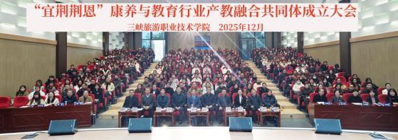 2025年12月30日上午,“宜荆荆恩”康养与教育行业产教融合共同体(以下简称“共同体”)成立大会暨大健康产业高质量发展研讨会在三峡旅游职业技术学院举行,学校当选第一届理事长单位。共同体旨在应对人口结构变化与民生发展需求,推动“宜荆荆恩”城市群“一老一小”领域产教深度融合,促进教育链、人才链与产业链、创新链有机衔接,构建跨区域、跨领域的新型产教融合生态。102个会员单位代表以及来自“宜荆荆恩”区域的政校行企代表近200人参加。