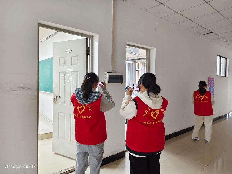 后勤党总支联合各学院组建了“后勤微光”学生志愿服务队,队员梁小敏同学说:“原来我们也能成为校园治理‘主力军’,看着自己排查的问题落地解决,特别有成就感。”11月6日,她与队友对文华楼设施展开拉网式排查,形成16项监督清单,目前已基本完成维修整改。