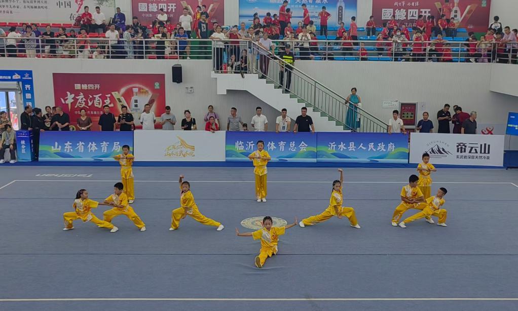 2025年8月,朱家庄小学学生参加全国传统武术公开赛(山东赛区)暨山东省第十五届全民健身运动会传统武术比赛。受访者供图