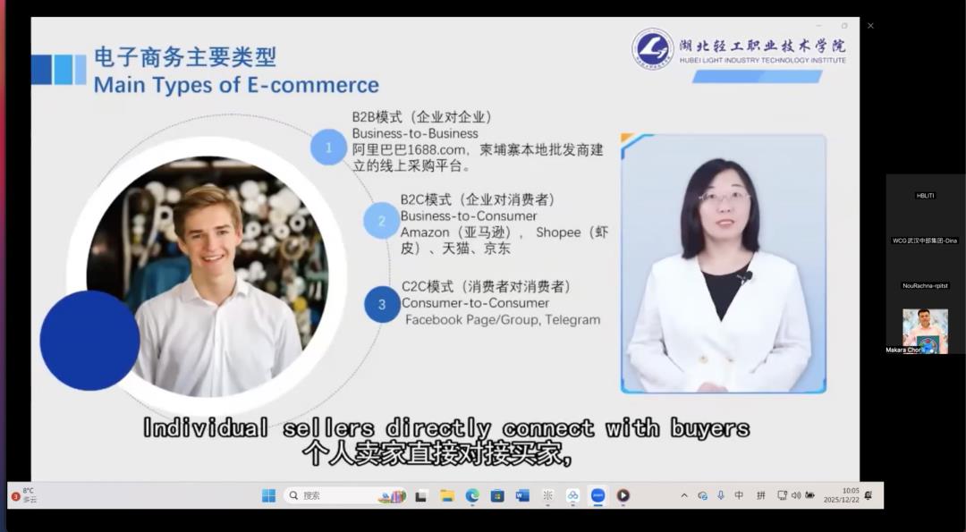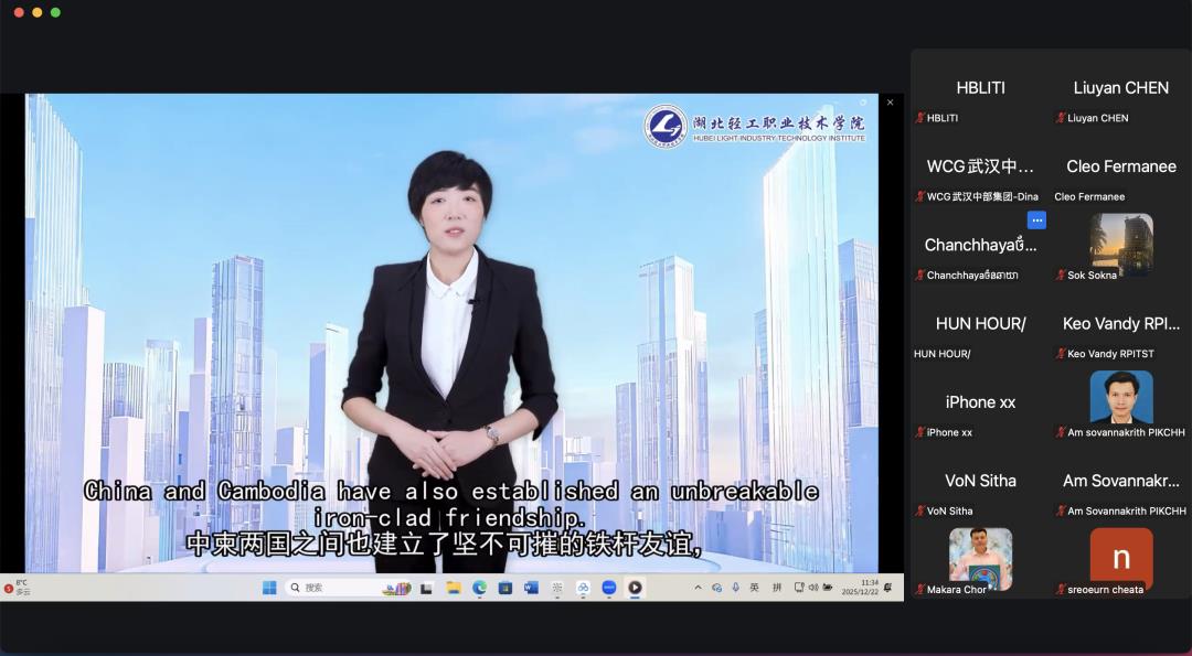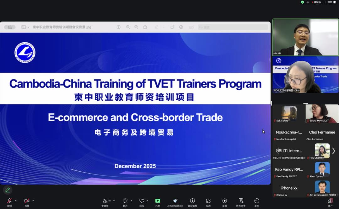 12月22日,中柬职业教育培训项目电子商务及跨境贸易师资培训班开班仪式以线上形式顺利举行。本次培训由柬埔寨王国劳动与职业培训部(MLVT)指导,湖北轻工职业技术学院承办,面向柬埔寨职业院校教师开展系统化、实战化的跨境电子商务能力提升培训,进一步深化中柬职业教育合作,服务“一带一路”倡议。