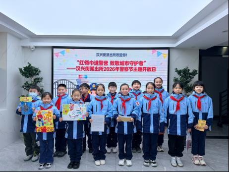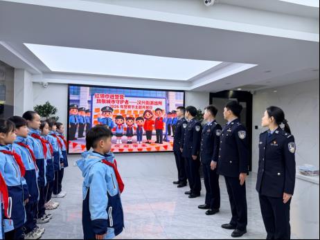 1月9日,在第六个中国人民警察节到来之际,武汉市江汉区红领巾学校优雅校区组织13名三到五年级少先队员走进汉兴街派出所,开展“红领巾进警营,致敬城市守护者”主题活动。