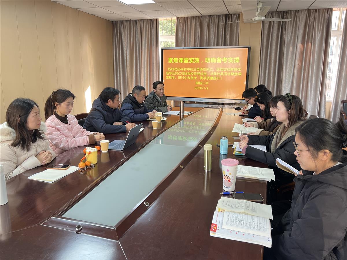1月9日上午,由武汉市青山区武钢实验学校教联体牵头组织的英语教学研讨活动在钢城二中顺利开展。武汉市第四十九初级中学初三英语组教师及教联体领导同仁应邀到校,与钢城二中英语组教师聚焦课堂教学与中考备考,开展深度交流,携手助推教学质量提升。