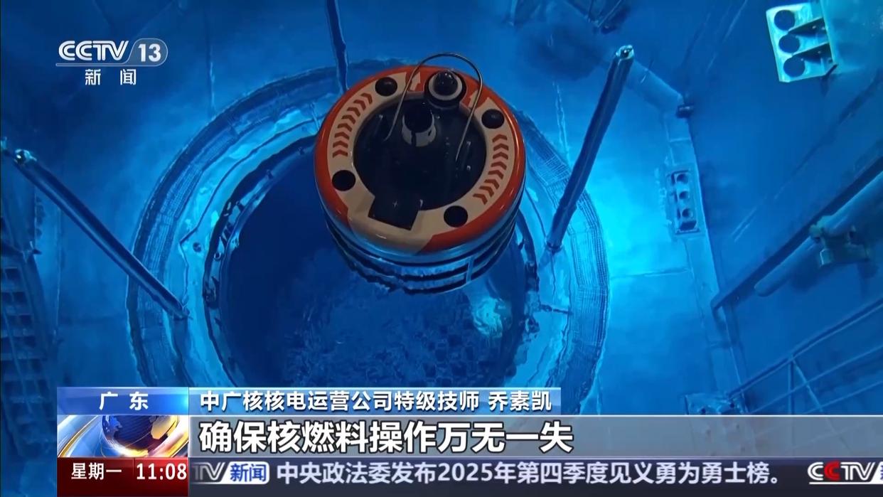 中广核核电运营公司特级技师 乔素凯:我们现在所有的新燃料组件是存储在新燃料厂房的,通过水下传输通道把燃料组件依次传到核反应堆厂房。