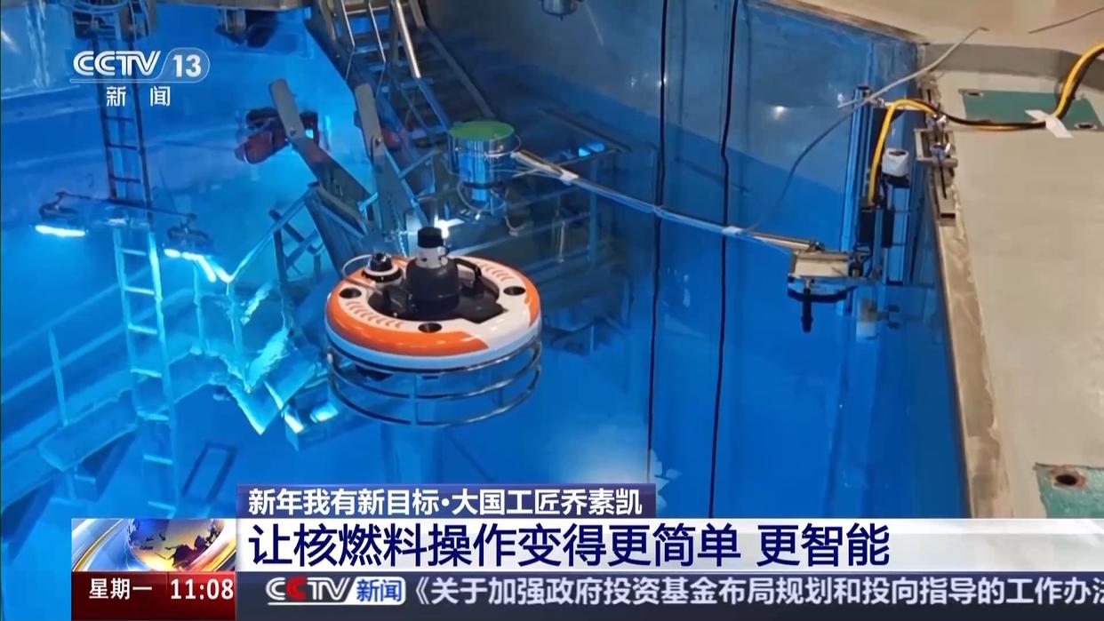 中广核核电运营公司特级技师 乔素凯:我们这次装料要用到新研发的装料巡检机器人,它也是第一次在核电站首次应用,主要用途是为水深18米下的核燃料操作提供高清视频检查和强光辅助照明。