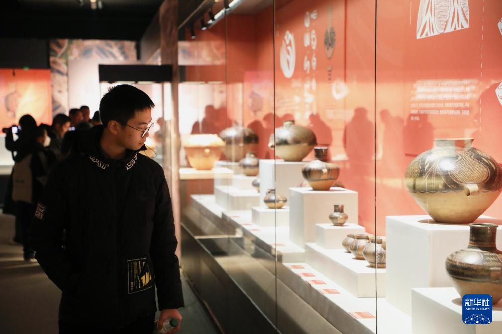 1月13日,观众在甘肃省博物馆参观“从黄河到天山——史前彩陶的西渐之路”文物展。