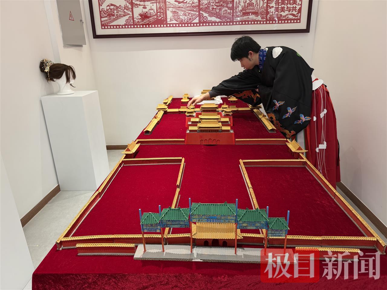展厅另一侧,黄子山还用纸板复原了故宫中轴线的主要建筑,从午门到乾清宫,同学们称赞该作品结构还原度较高。“轨道专业常要看图纸、算比例,这些训练对做模型帮助很大。”他表示。
