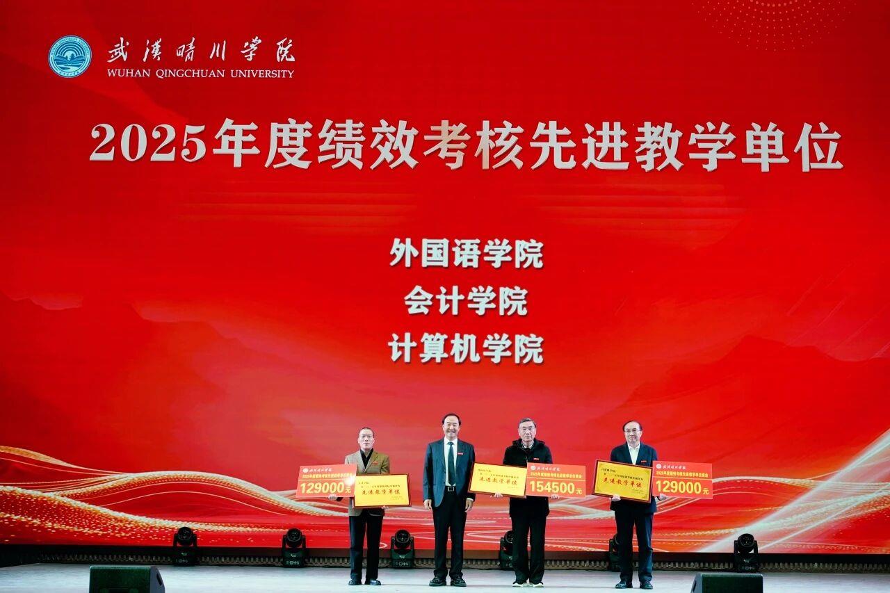 总结表彰结束后,学校随即举行了“瑞启新元 春满晴川”2026年新春联欢会,师生共庆新春佳节。联欢会在会计学院与北斗学院带来的开场舞《盛世华章》中拉开帷幕。