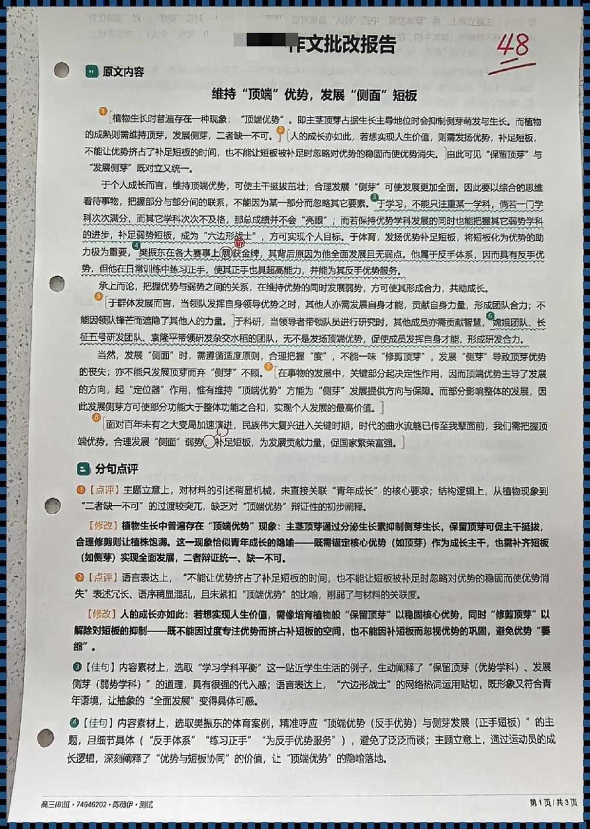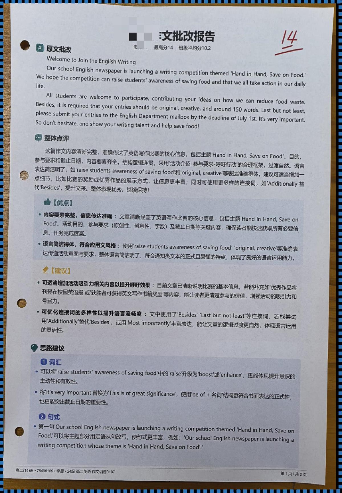 在语文、英语作文批改中,AI技术已开展试点应用。系统可快速分析作文立意、词句运用,并生成详细修改报告,实现“一人一策”的个性化指导,缩短了“学习——反馈——修正”的周期。
