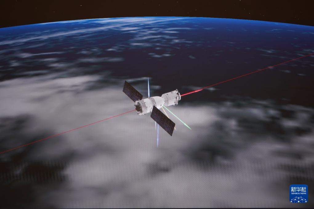 1月19日在北京航天飞行控制中心拍摄的神舟二十号飞船撤离空间站的模拟画面。
