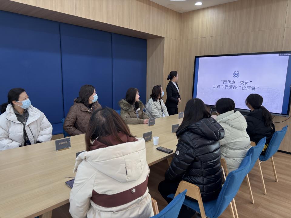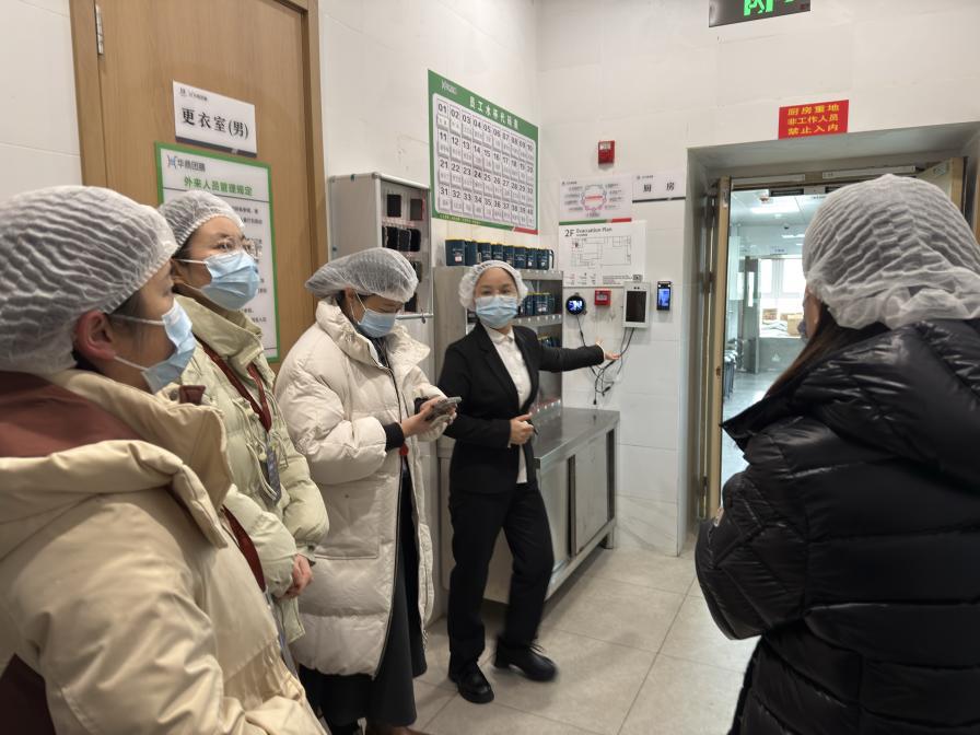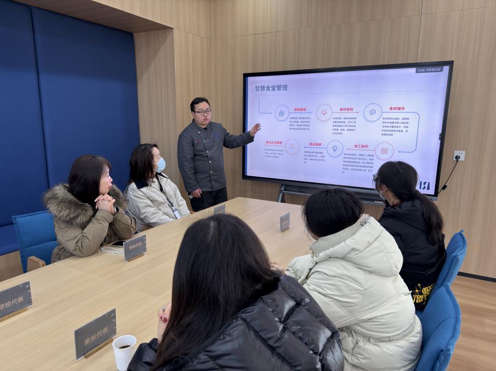 之后,一行人移步会议厅参加专项汇报会。餐厅负责人从食材采购、验收储存、加工烹饪、试尝留样、清洗消毒、从业人员双重资质审核(健康体检+无违法犯罪记录查询)、档案资料建设等十大环节,详细汇报了学校食品安全管理工作,并重点介绍了特色管理举措:“我们始终以‘0事故’为目标,积极收集学生和家长们的反馈并持续优化。”