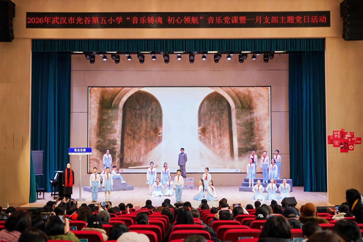 1月22日,武汉市光谷第五小学以“音乐铸魂·初心领航”为主题,组织开展了一场别开生面的音乐党课暨支部主题党日活动,该校全体党员教师参与,学校共建单位(社区、中小学、幼儿园)党员代表受邀出席。