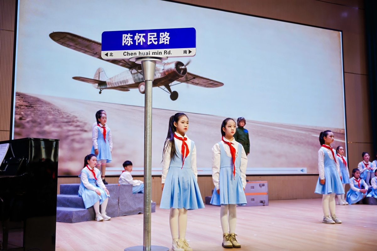 接下来是音乐演出:第一乐章“启航·星火初燃”,学校弦乐社团带来弦乐合奏《轻舟荡漾》,并演绎小提琴《小红帽》及大提琴《雪绒花》,孩子们专注地演奏展现出艺术教育的扎实根基;第二乐章“成长·岁月如歌”,学校小演员合唱团清澈献唱《山亭夏日》,弦乐社团继续带来《小步舞曲》《很久很久以前》等曲目,音符中流淌着成长的故事;第三乐章“使命·红旗飘扬”,小演员合唱团激昂唱响《红星歌》,弦乐教师深情演奏《红旗飘飘》,李星燃老师独唱《我们中国》,情感层层递进,引人共鸣。这些成果集中展示学校在“五育并举”育人理念下推进艺术教育的特色成果。此外,学校“初心话剧团”倾情呈现曾获武汉市经典诵读一等奖的节目《山河记得您》,学生们用铿锵有力的诵读,演绎家国情怀与英雄赞歌,将现场氛围推向又一个情感高潮。