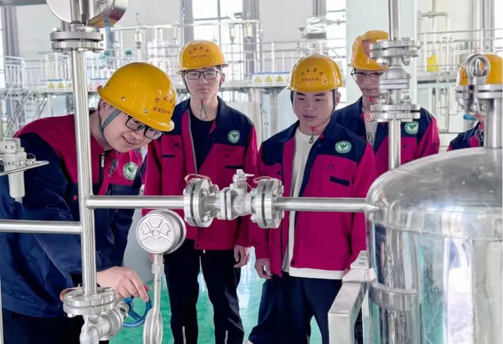 在白洋精细磷化中心产教融合示范基地,三职学生在企业真实场景实践学习。该基地总投资1.4亿元、占地逾万平方米,是“十四五”教育强国推进工程项目。