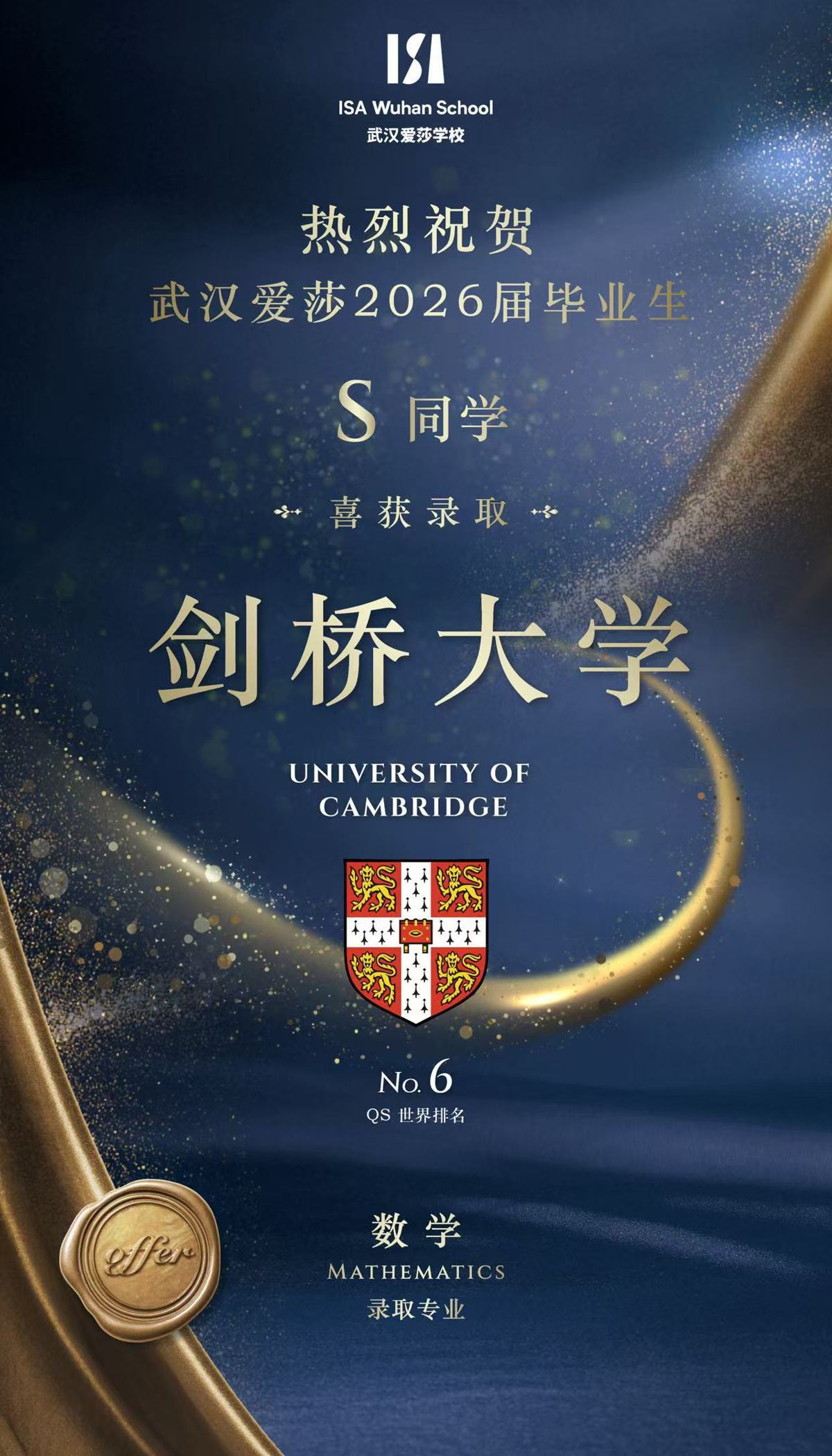 这不仅仅是一封录取通知书,它是武汉爱莎2026届孙同学以思维为利刃,在世界学术版图上刻下的一个坐标。这个坐标背后,是建校仅四年的武汉爱莎,以惊人的“教育加速度”问鼎巅峰的坚实印证。