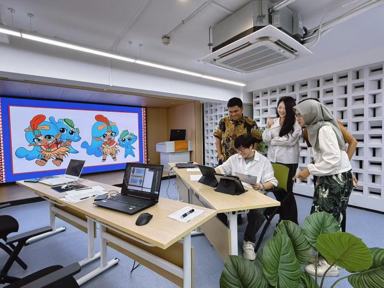 2025年世界职业院校技能大赛艺术设计赛道同样传来喜讯,由学校创新创业中心打造的“蔚蓝回响之呼吸的碎片”项目荣获国赛铜奖。该项目由印尼留学生DWI NOVRIANTO、Marliana Diah Hapsari、Charles Firmansyah与中国学生李培杰组成跨国参赛团队,以“巴迪克与玉澜:中印海岛环保的纹浪对话”为主题,聚焦两国共同面临的海岛环境挑战,打造出“佩尼”“佩普”两位海岛守护者IP形象及衍生作品,传递环保理念。