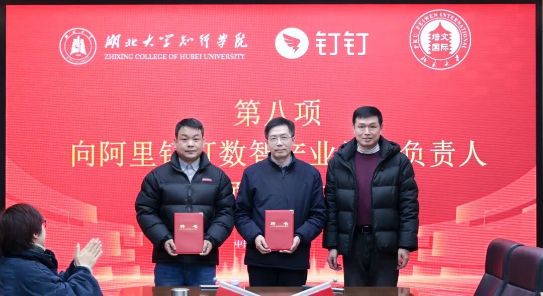 1月27日上午,湖北大学知行学院阿里钉钉数智产业学院成立大会暨校企合作签约仪式在该校举行。这是继正誉数智财经产业学院揭牌成立后,学校成立的第二个现代产业学院。