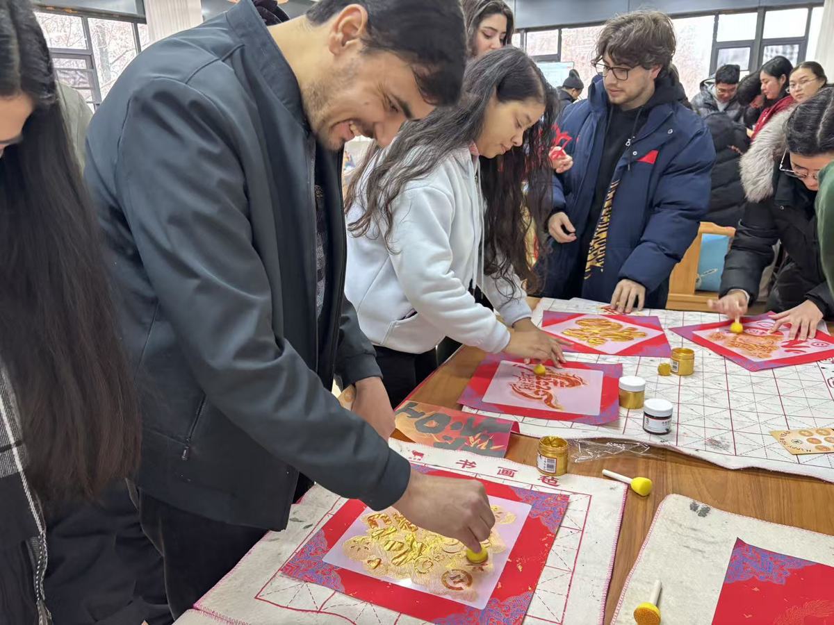 妙剪生花、新春拓福、彩龙飞舞……1月26日下午,湖北大学武昌校区内张灯结彩,来自世界各地的150余名中外学子齐聚一堂,共赴“非遗拾趣,福启新岁”新春游园会,在剪纸、拓印等丰富多样的活动中体验中华非遗,喜迎马年新春。